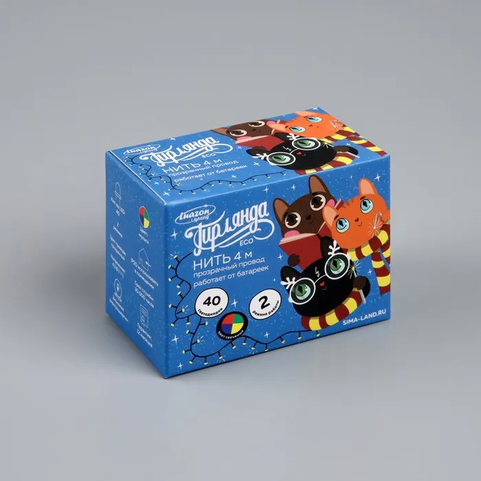 Гирлянда «Нить» 4 м, IP20, прозрачная нить, 40 LED, 2 режима, батарейки AAх3 (нет в комплекте), свечение мульти — Характеристики