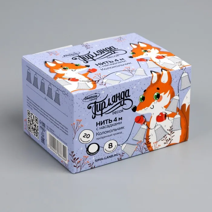 Гирлянда «Нить» 4 м с насадками «Колокольчик», IP20, прозрачная нить, 20 LED, свечение белое, 8 режимов, 220 В — Характеристики