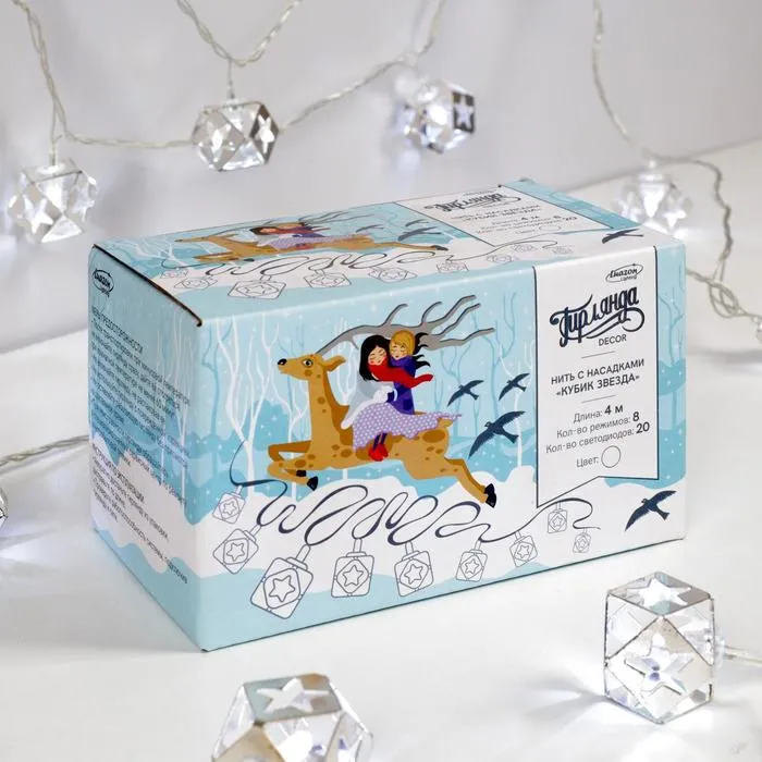 Гирлянда «Нить» 4 м с насадками «Кубик звезда», IP20, прозрачная нить, 20 LED, свечение белое, 8 режимов, 220 В — Характеристики