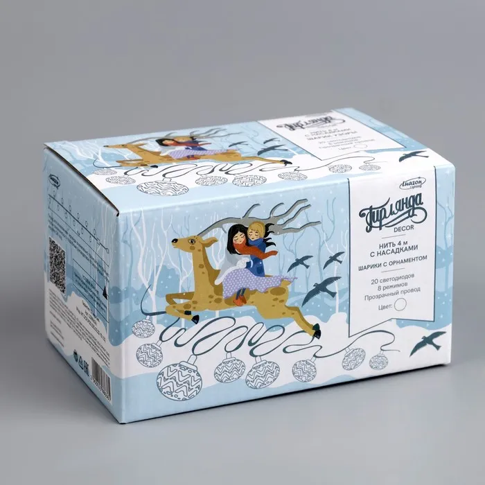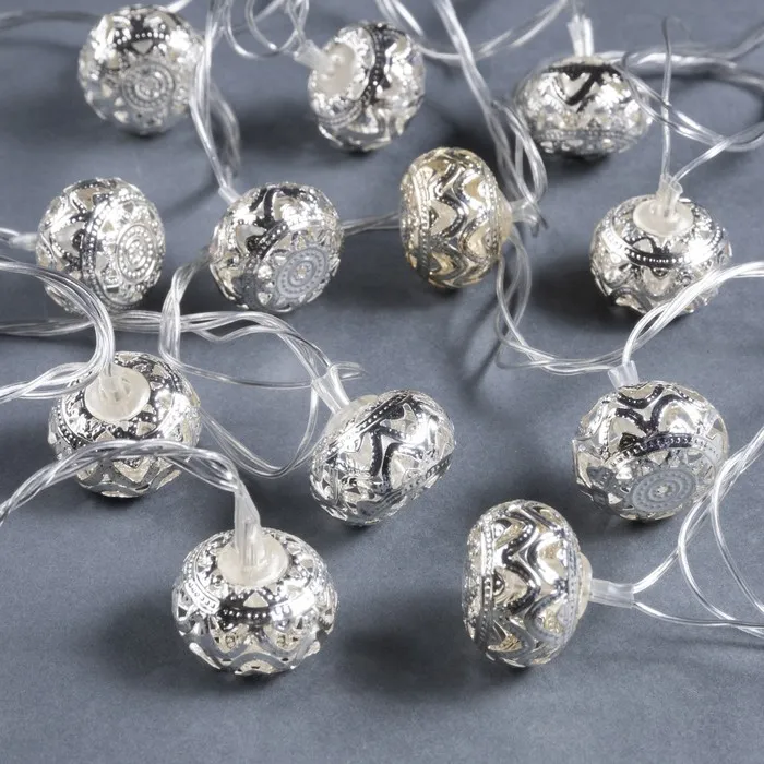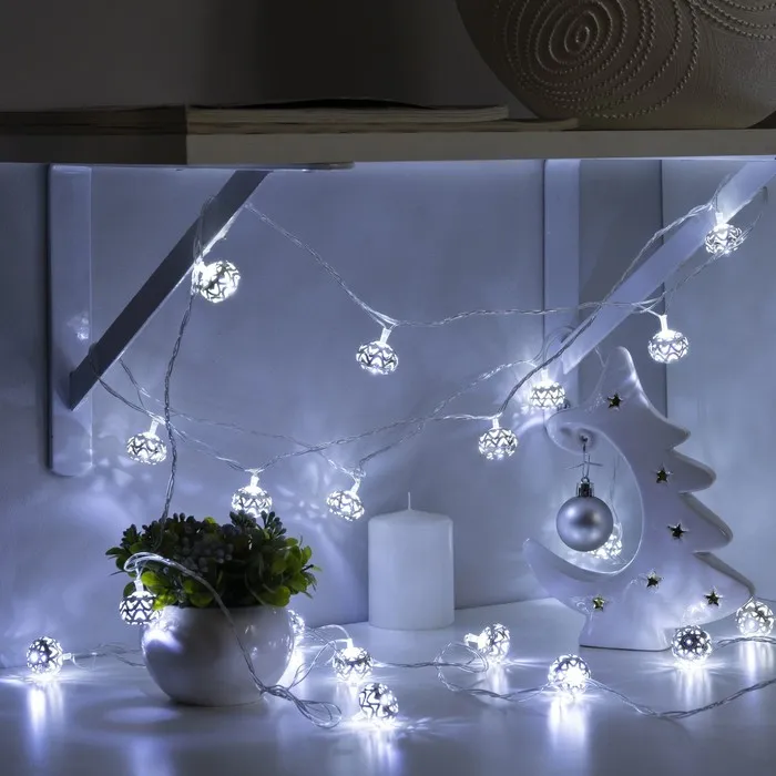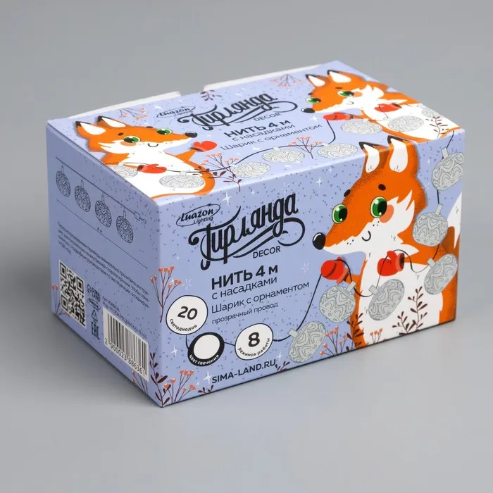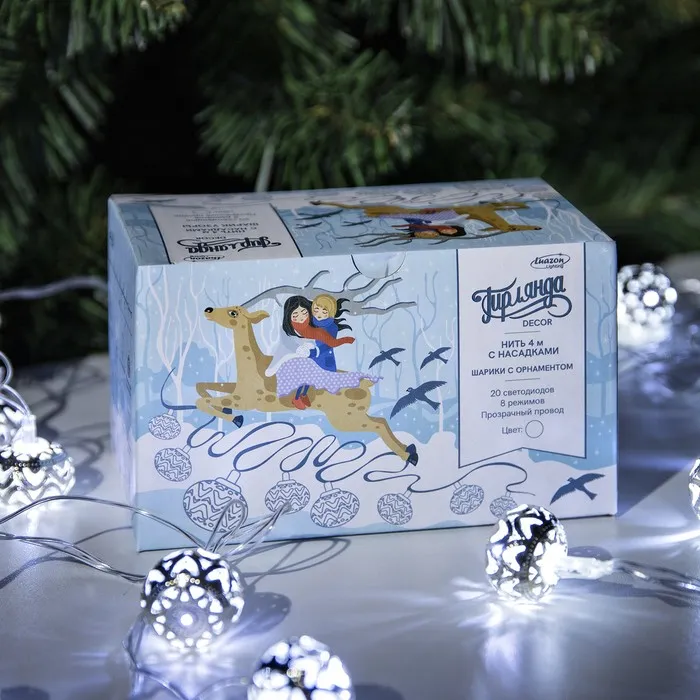 Гирлянда «Нить» 4 м с насадками «Шарик с орнаментом», IP20, прозрачная нить, 20 LED, свечение белое, 8 режимов, 220 В — Характеристики