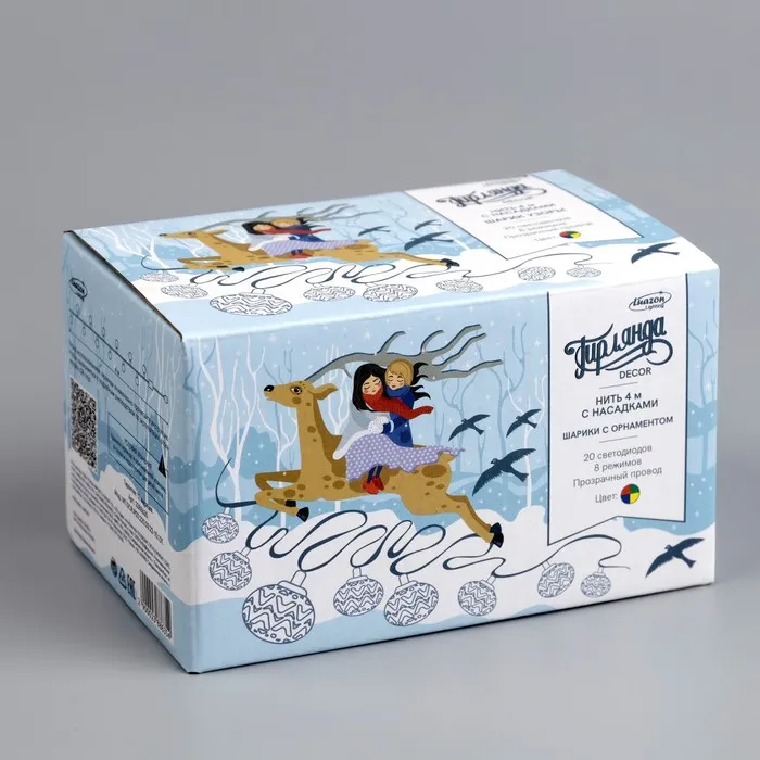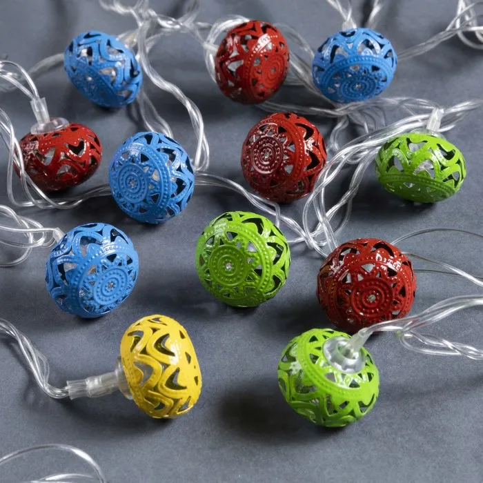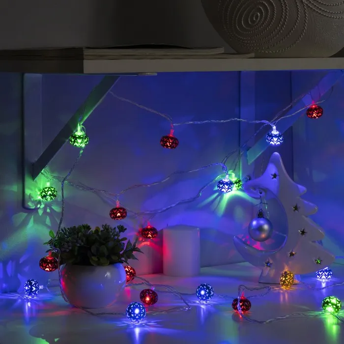 Гирлянда «Нить» 4 м с насадками «Шарик с орнаментом», IP20, прозрачная нить, 20 LED, свечение мульти, 8 режимов, 220 В — Характеристики