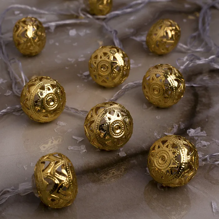 Гирлянда «Нить» 4 м с насадками «Шарик с орнаментом», IP20, прозрачная нить, 20 LED, свечение тёплое белое, 8 режимов, 220 В — Характеристики