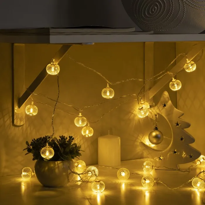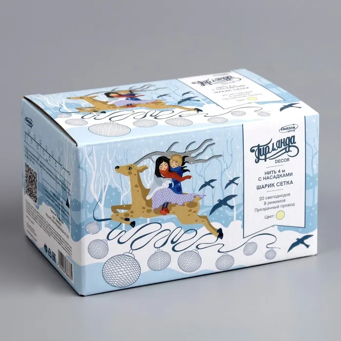 Гирлянда «Нить» 4 м с насадками «Шарик сетка», IP20, прозрачная нить, 20 LED, свечение тёплое белое, 8 режимов, 220 В — Характеристики