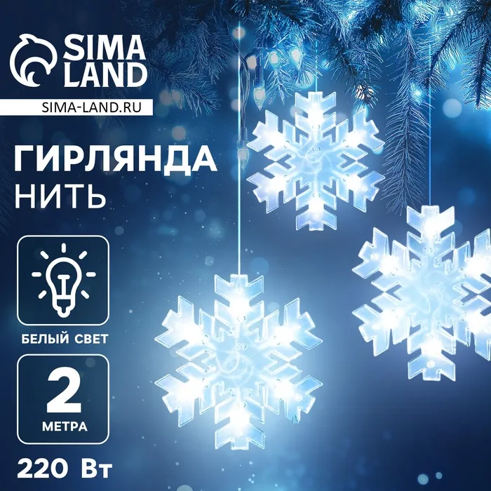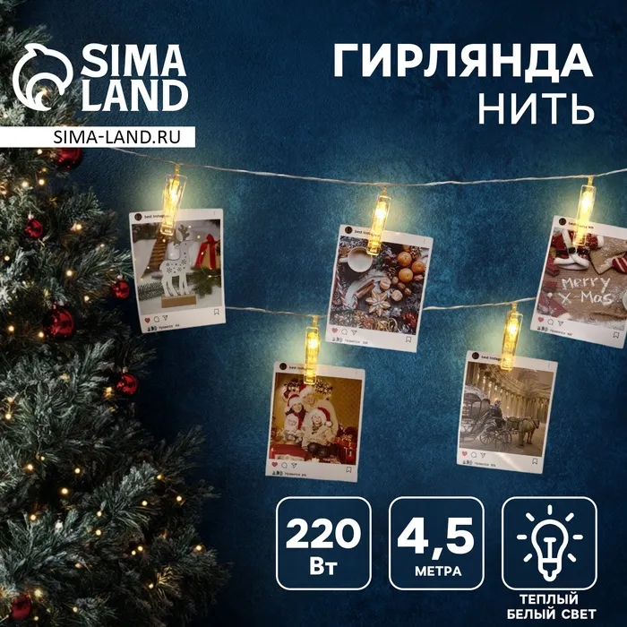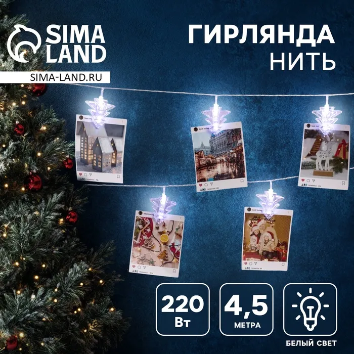 Гирлянда-нить, 4.5 м с насадками «Прищепки», IP20, прозрачная нить, 20 LED, свечение белое 220 В — Характеристики