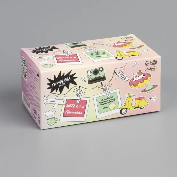Гирлянда-нить, 4.5 м с насадками «Прищепки», IP20, прозрачная нить, 20 LED, свечение тёплое белое, 220 В — Характеристики