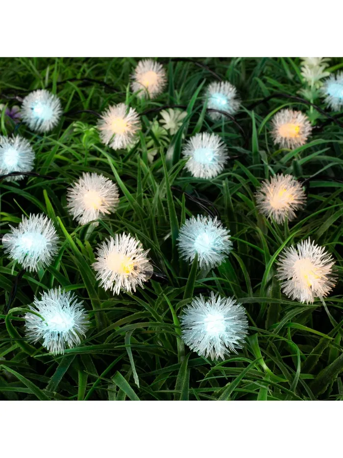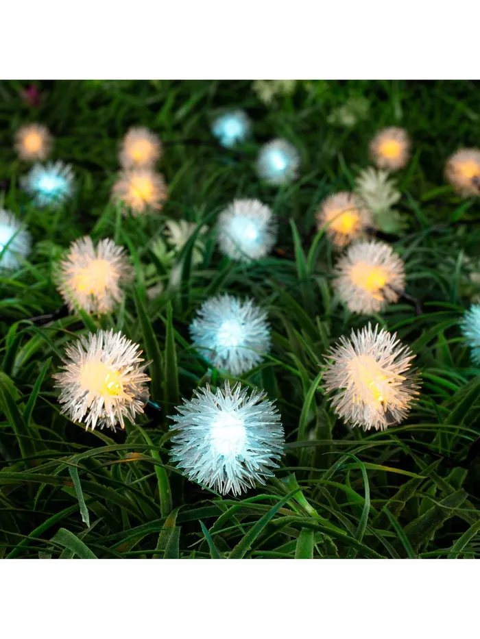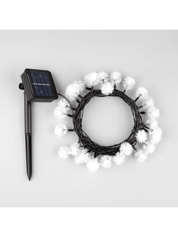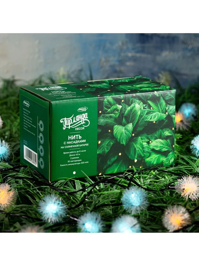 Гирлянда «Нить», 4.5 м, уличная, с насадками «Ёжики», IP44, 30 LED, 2 режима, солнечная батарея, тёмная нить, свечение жёлтое/аквамарин — Характеристики