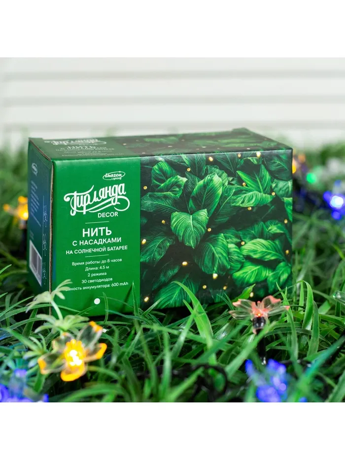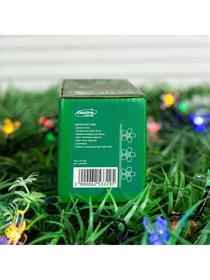 Гирлянда «Нить», 4.5 м, уличная, с насадками «Ромашка», IP44, 30 LED, 2 режима, солнечная батарея, тёмная нить, свечение мульти — Характеристики