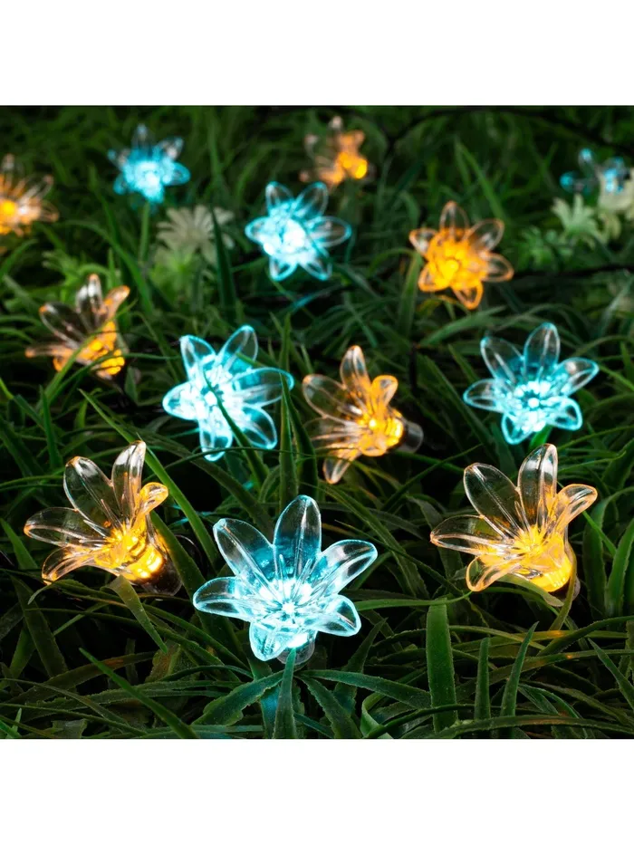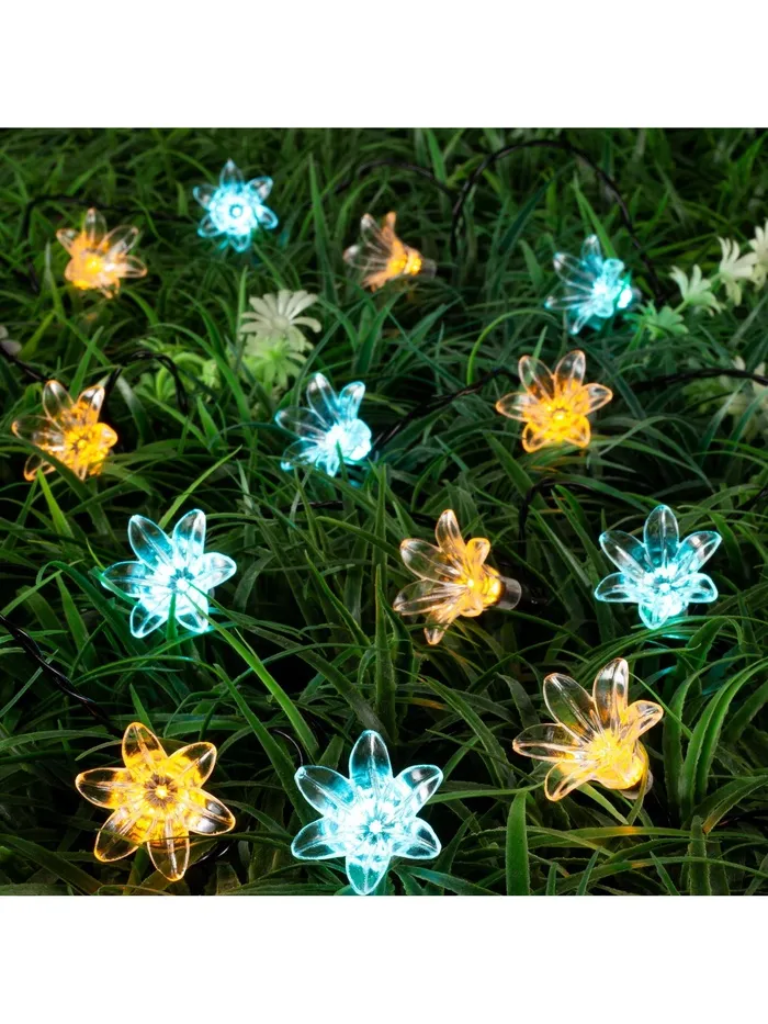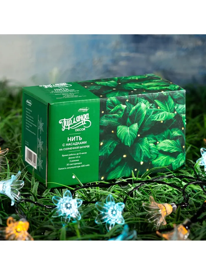 Гирлянда «Нить», 4.5 м, уличная, с насадками «Цветок», IP44, 30 LED, 2 режима, солнечная батарея, тёмная нить, свечение жёлтое/аквамарин — Характеристики
