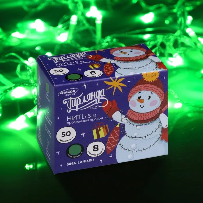 Гирлянда «Нить» 5 м, IP20, прозрачная нить, 50 LED, 8 режимов, 220 В, свечение зелёное — Характеристики