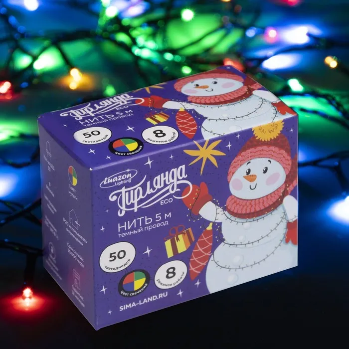 Гирлянда «Нить» 5 м, IP20, тёмная нить, 50 LED, 8 режимов, 220 В, свечение мульти — Характеристики