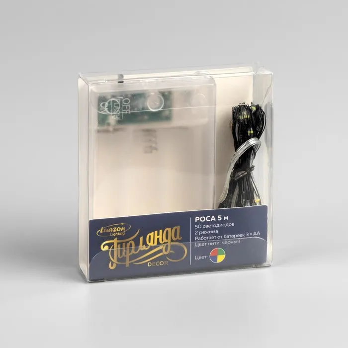 Гирлянда «Нить» 5 м роса, IP20, чёрная нить, 50 LED, 2 режима, батарейки AAх3 (не в комплекте), свечение мульти — Характеристики