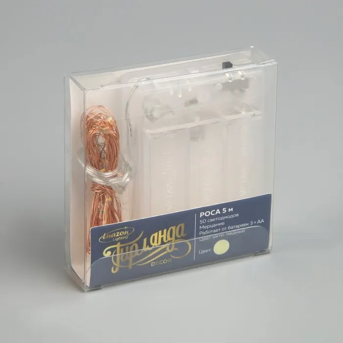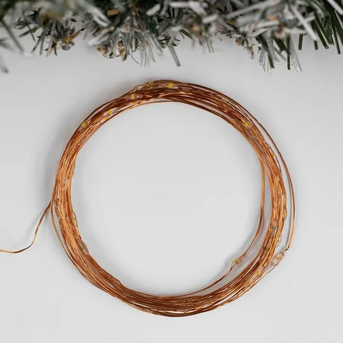 Гирлянда «Нить» 5 м роса, IP20, медная нить, 50 LED, мерцание, батарейки AAх3 (нет в комплекте), свечение тёплое белое — Характеристики