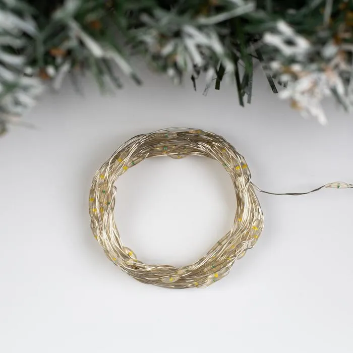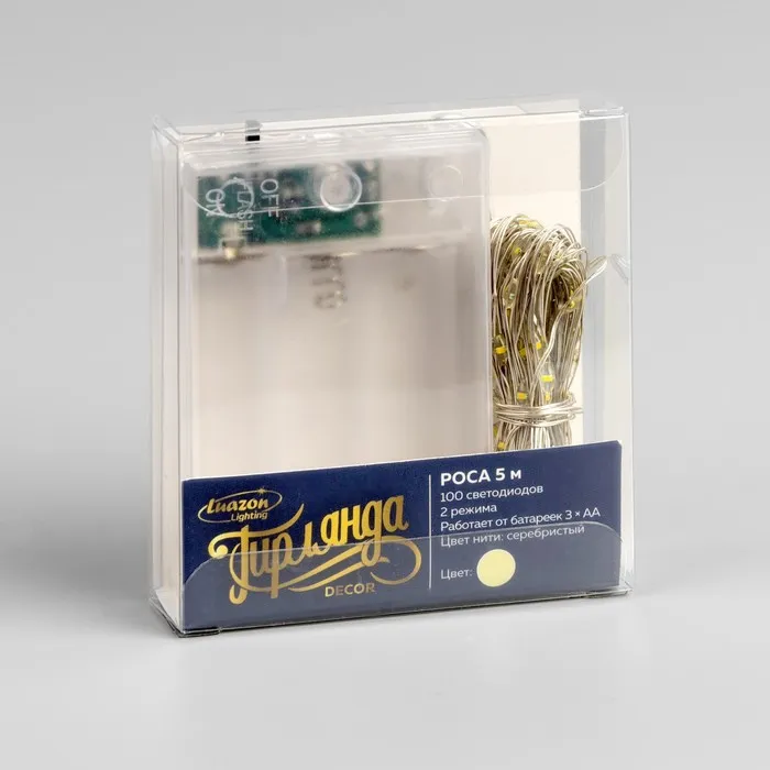 Гирлянда «Нить» 5 м роса, IP20, серебристая нить, 100 LED, 2 режима, батарейка AAх3 (не в комплекте), свечение тёплое белое — Характеристики