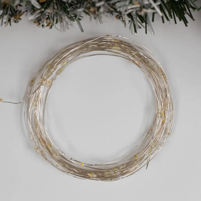 Гирлянда «Нить» 5 м роса, IP20, серебристая нить, 100 LED, 2 режима, батарейки AAх3 (не в комплекте), свечение мульти