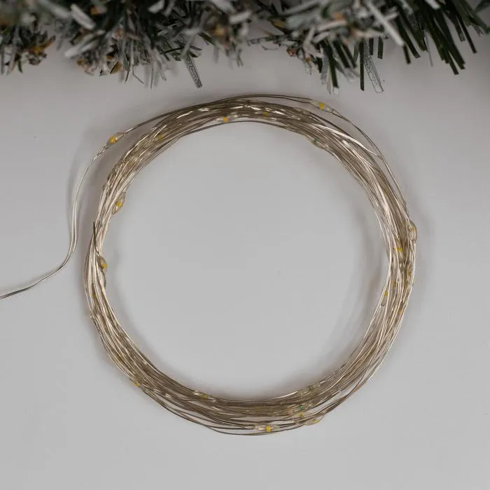 Гирлянда «Нить» 5 м роса, IP20, серебристая нить, 50 LED, 2 режима, батарейки AAх3 (не в комплекте), свечение тёплое белое