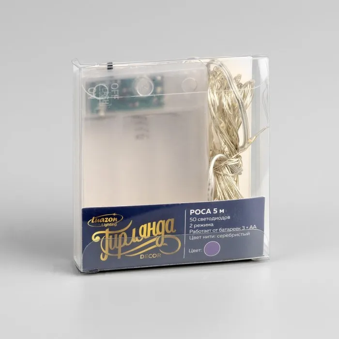 Гирлянда «Нить» 5 м роса, IP20, серебристая нить, 50 LED, 2 режима, батарейки AAх3 (нет в комплекте), свечение фиолетовое — Характеристики