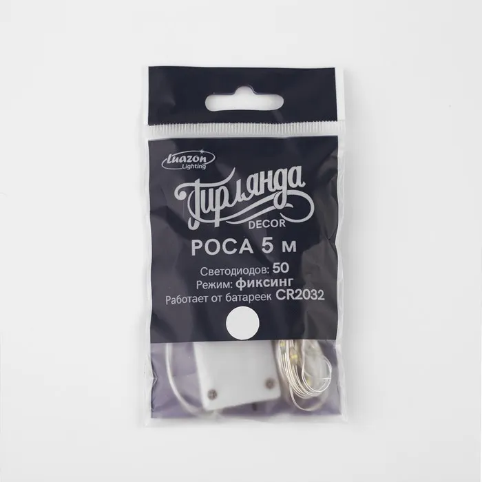 Гирлянда «Нить» 5 м роса, IP20, серебристая нить, 50 LED, батарейки CR2032х2 (в комплекте), свечение белое — Характеристики