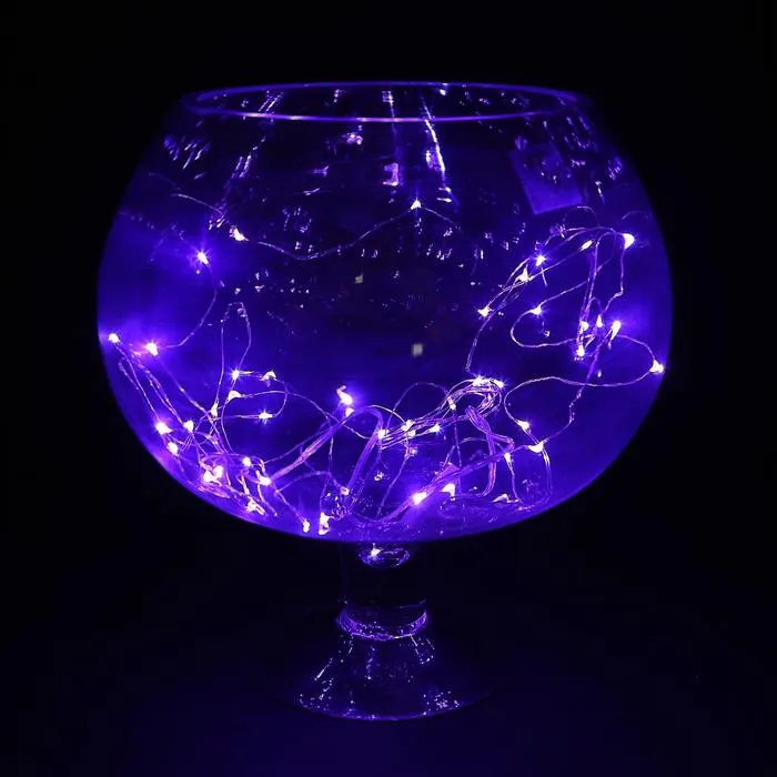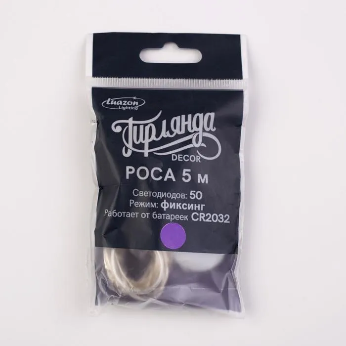 Гирлянда «Нить» 5 м роса, IP20, серебристая нить, 50 LED, батарейки CR2032х2 (в комплекте), свечение фиолетовое — Характеристики
