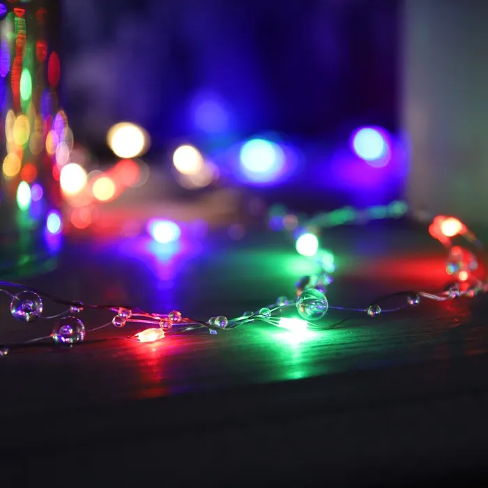 Гирлянда «Нить» 5 м роса с насадками «Шарики», IP20, нить серебристая, 50 LED, 8 режимов, свечение мульти, 220 В — Характеристики