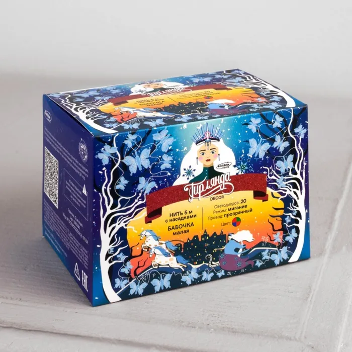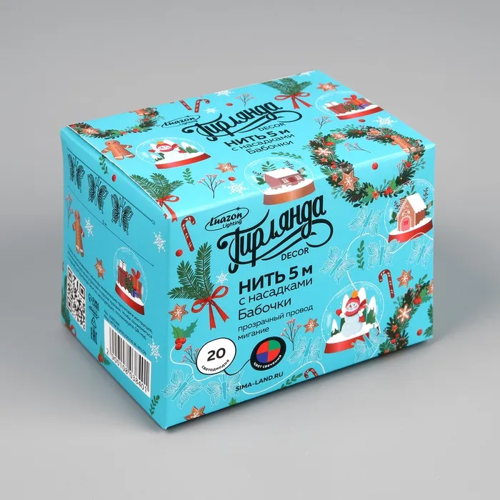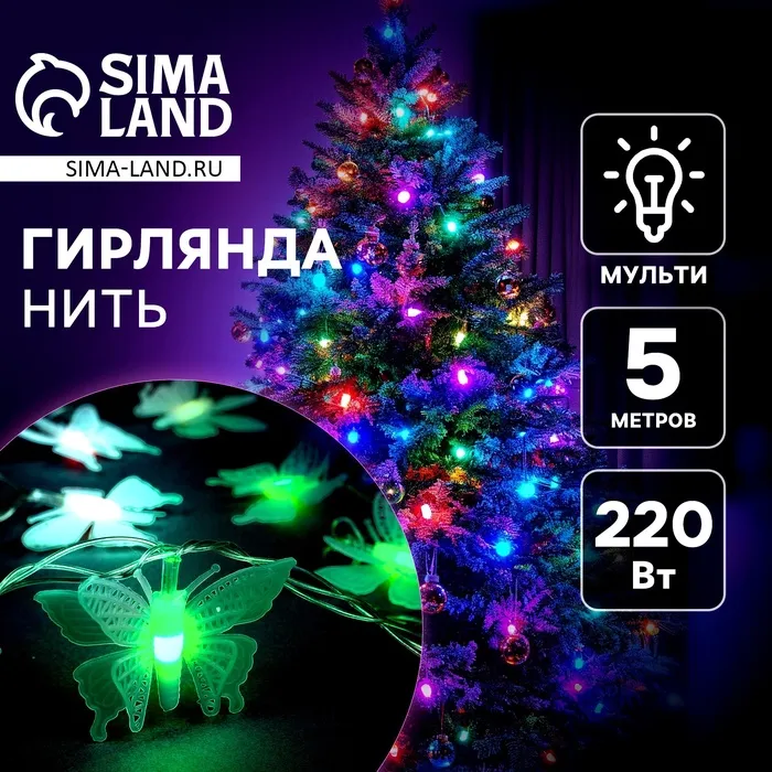 Гирлянда «Нить» 5 м с насадками «Бабочки малые», IP20, прозрачная нить, 20 LED, свечение мульти (RG/RB), мигание, 220 В — Характеристики