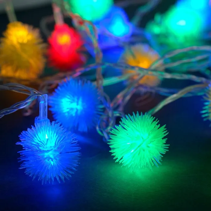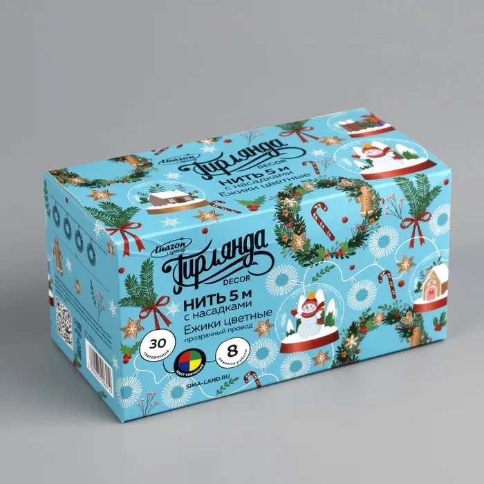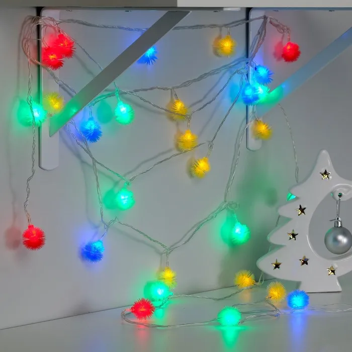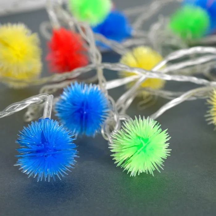 Гирлянда «Нить» 5 м с насадками «Ёжики цветные», IP20, прозрачная нить, 30 LED, свечение мульти, 8 режимов, 220 В — Характеристики