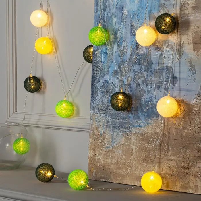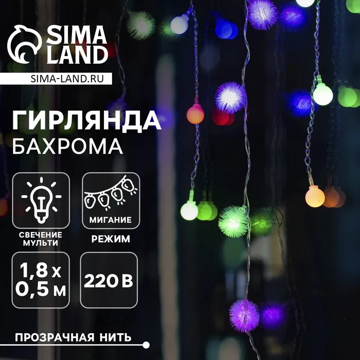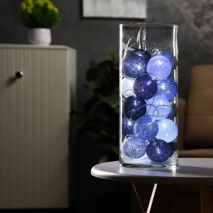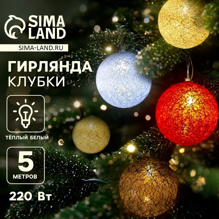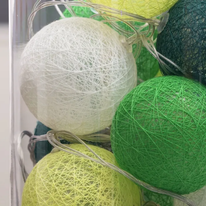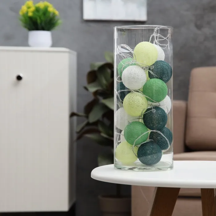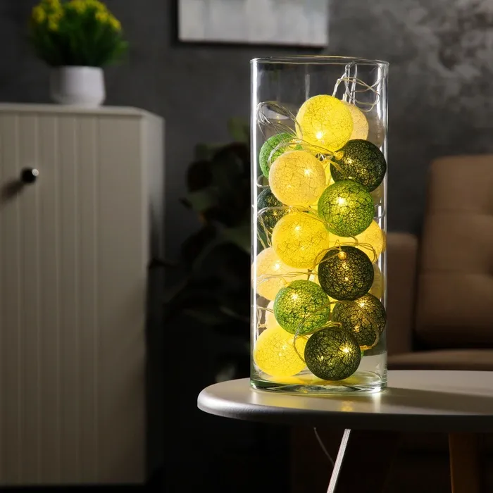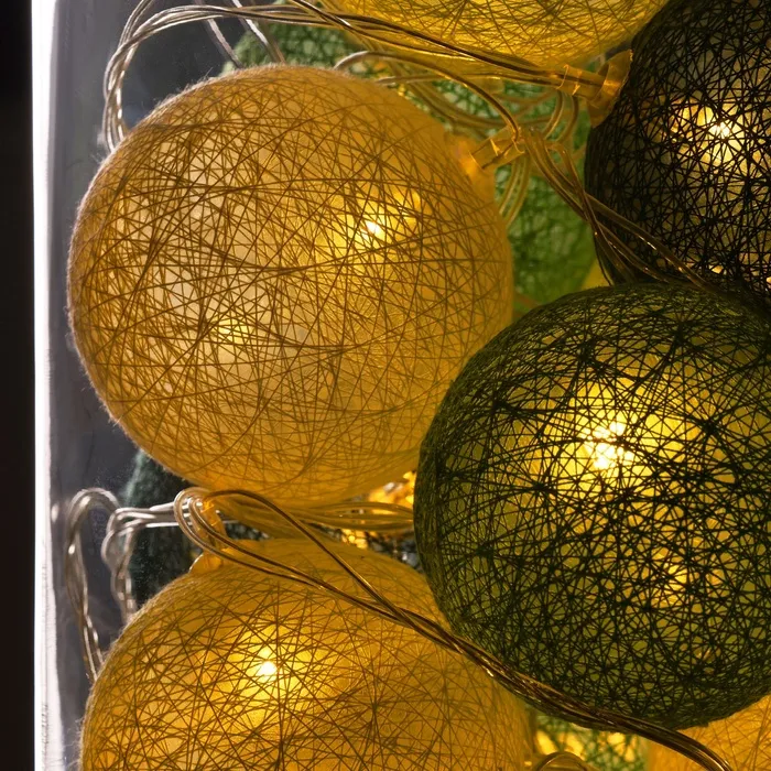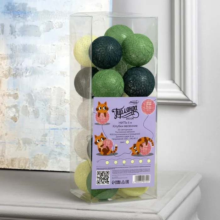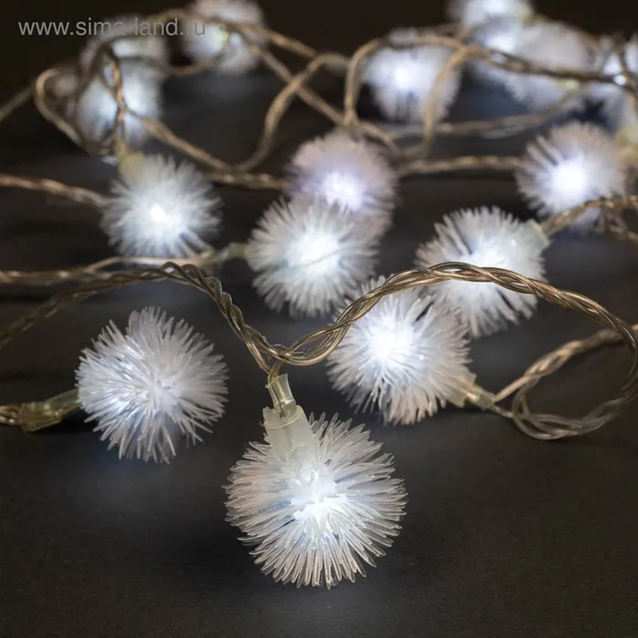 Гирлянда - нить, 5 м с насадками «Клубки бело-зелёные», IP20, прозрачная нить, 20 LED, свечение тёплое белое, 220 В — Характеристики