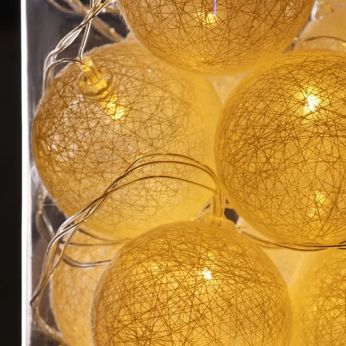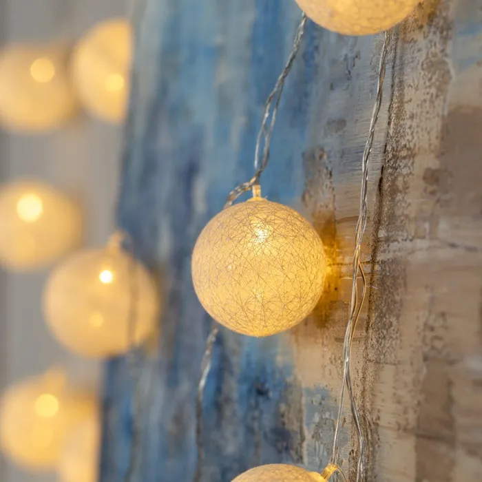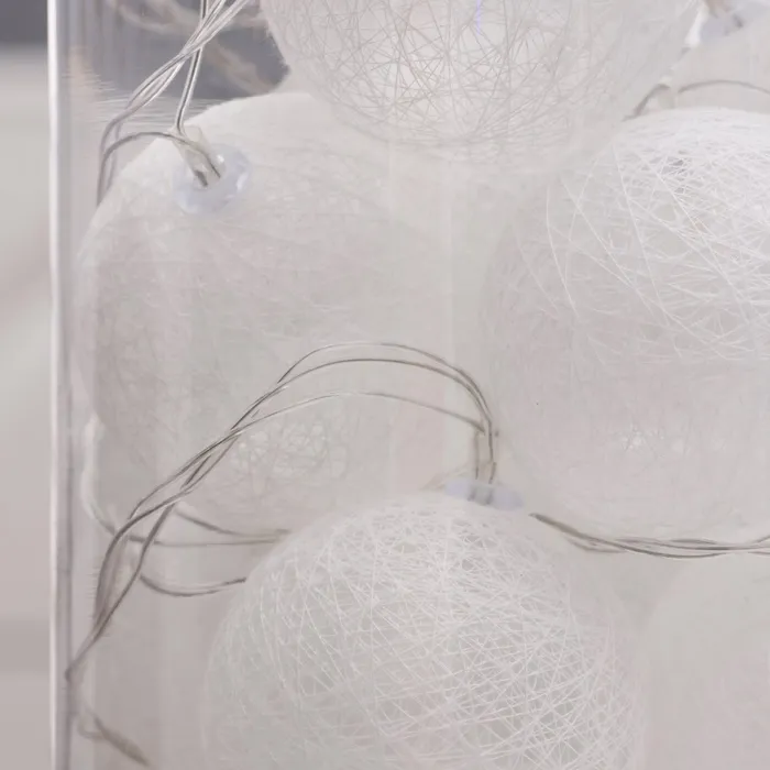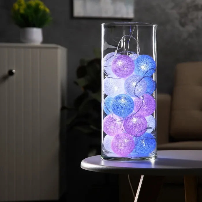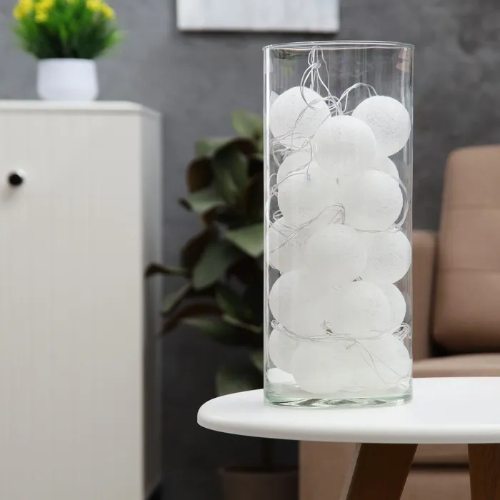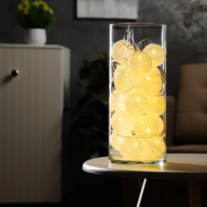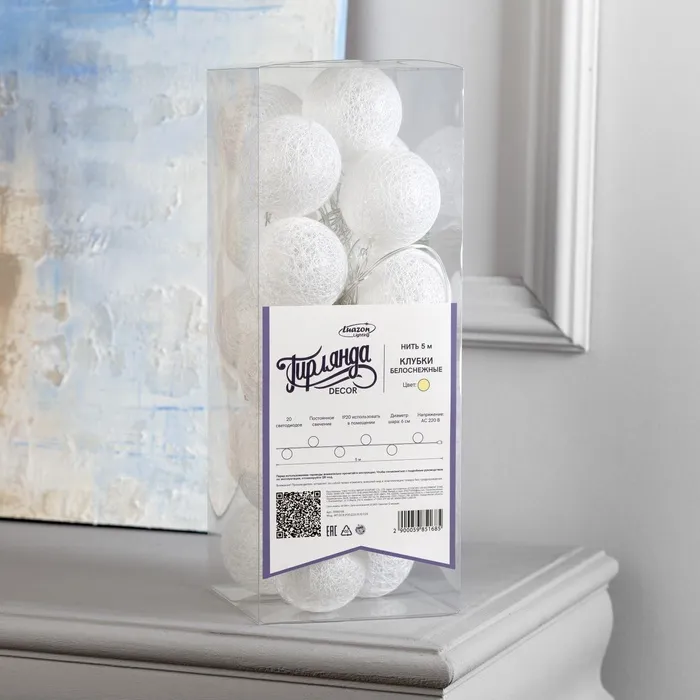 Гирлянда «Нить» 5 м с насадками «Клубки белоснежные», IP20, прозрачная нить, 20 LED, свечение тёплое белое, 220 В — Характеристики