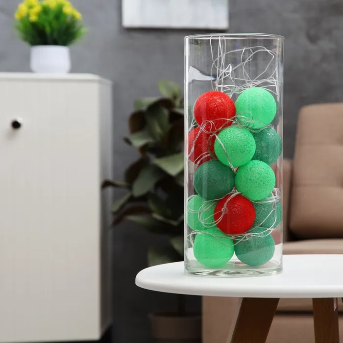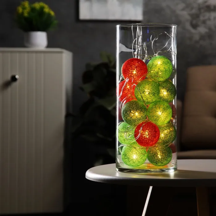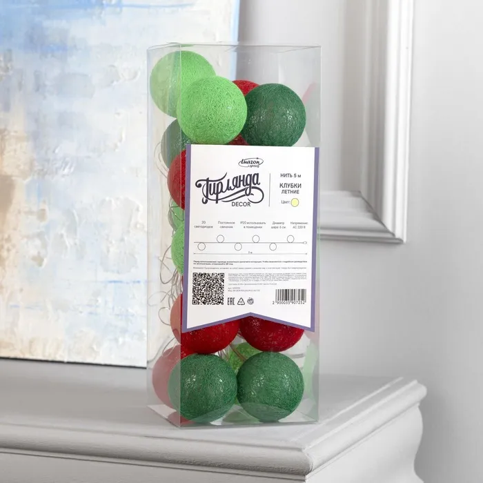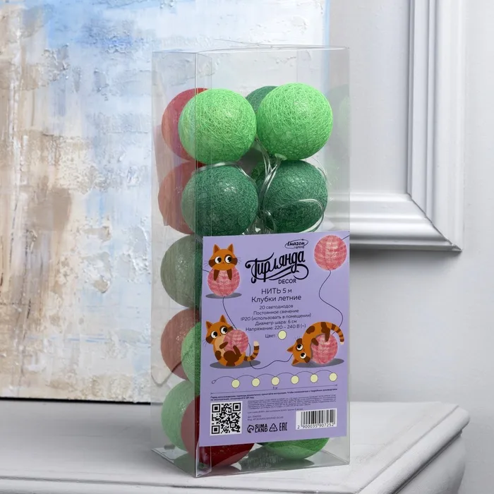 Гирлянда - нить, 5 м с насадками «Клубки летние», IP20, прозрачная нить, 20 LED, свечение тёплое белое, 220 В — Характеристики
