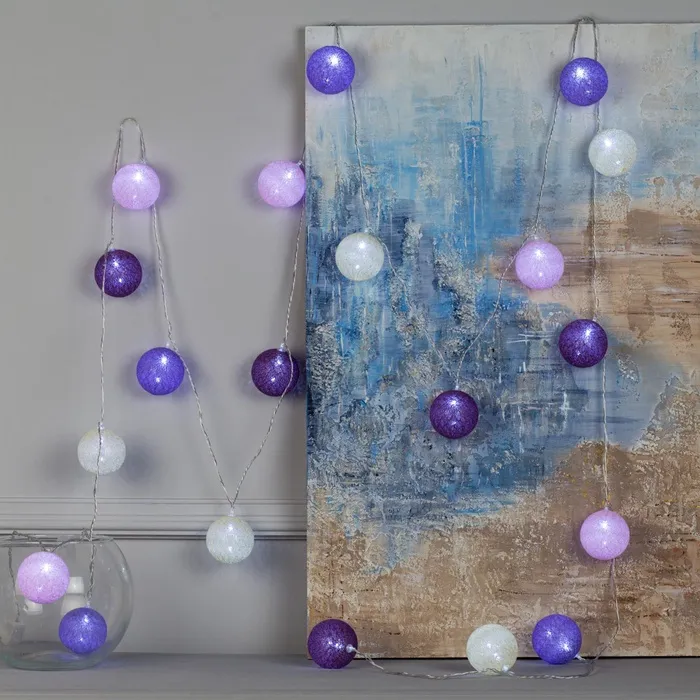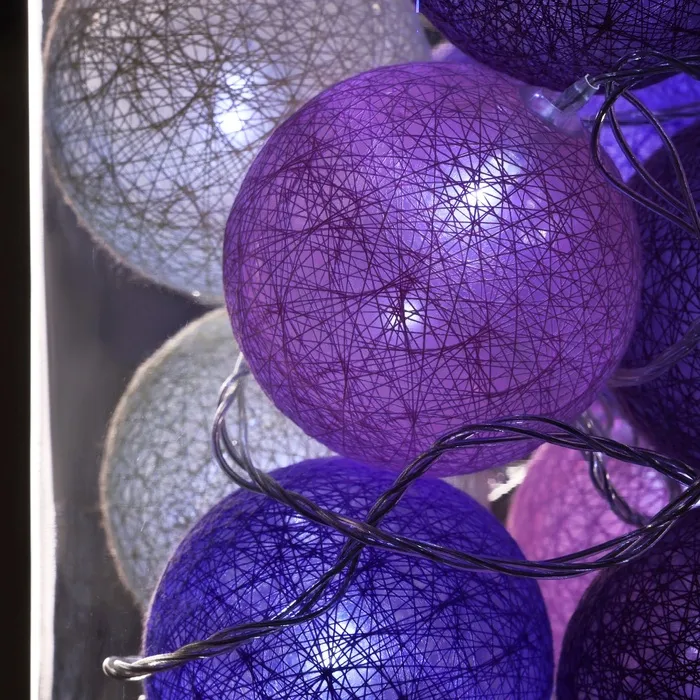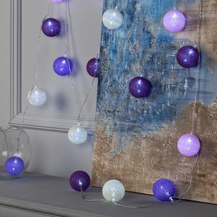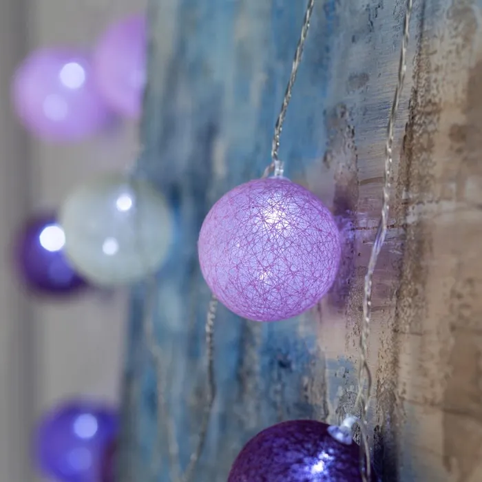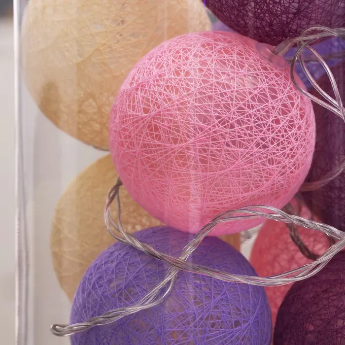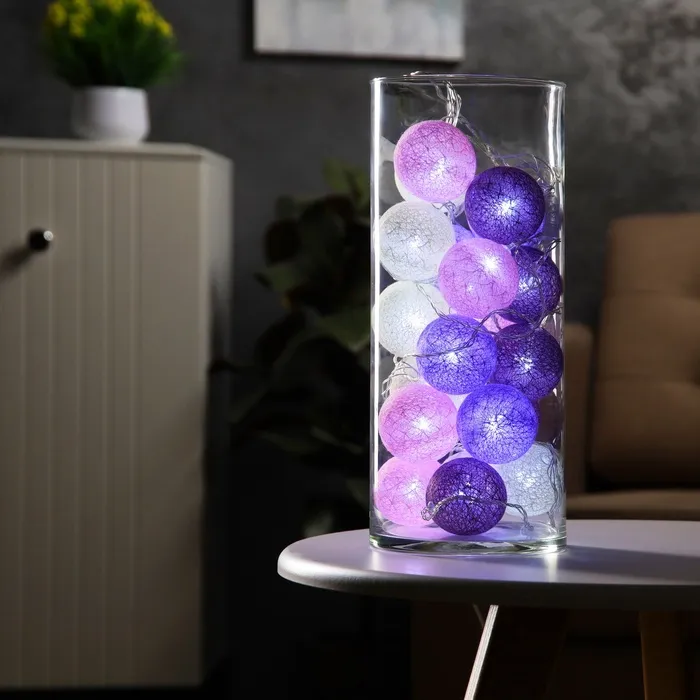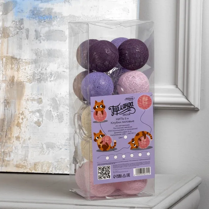 Гирлянда - нить, 5 м с насадками «Клубки лиловые», IP20, прозрачная нить, 20 LED, свечение белое, 220 В — Характеристики