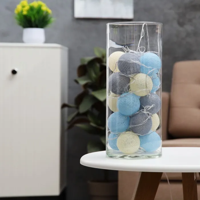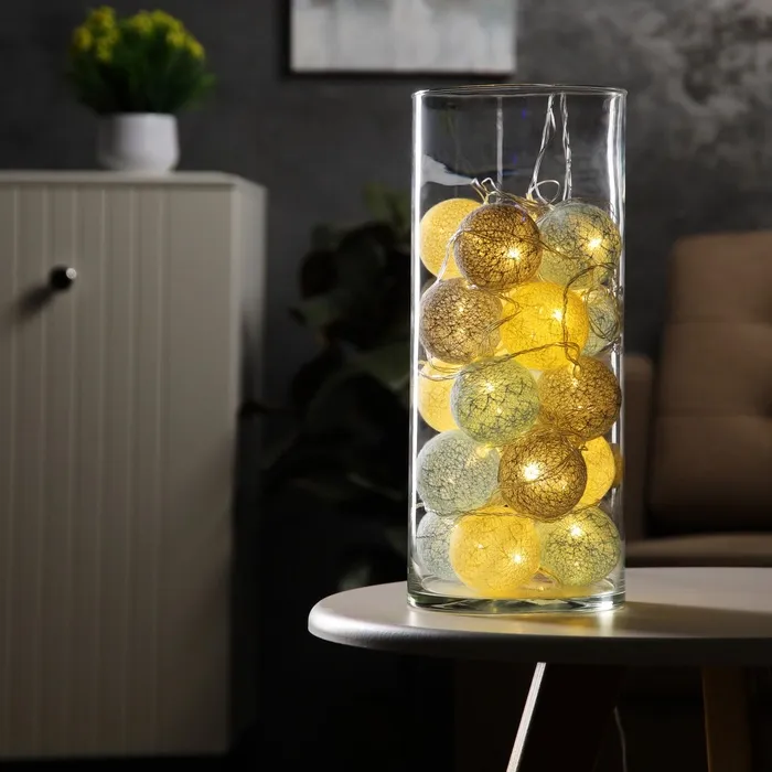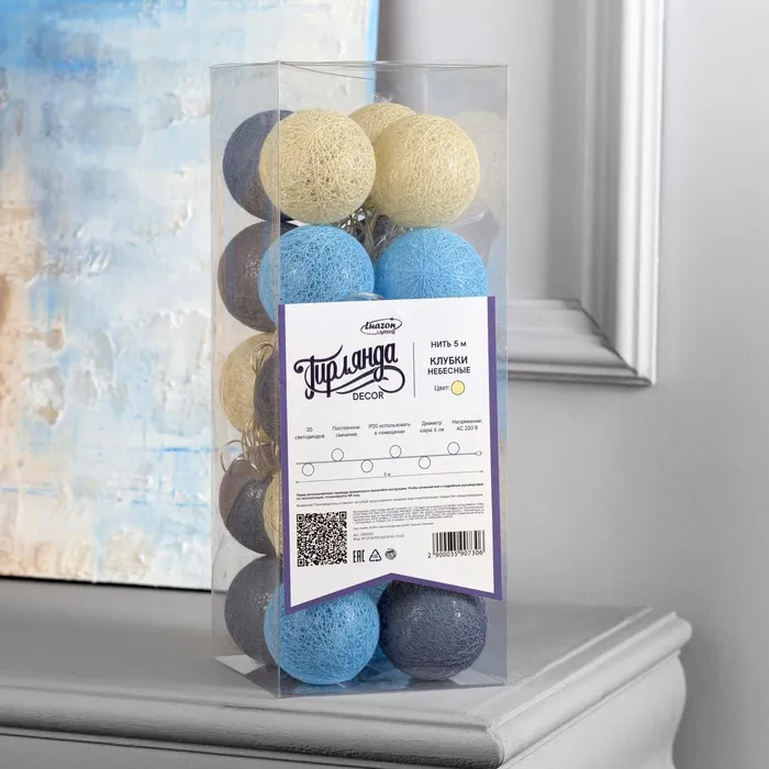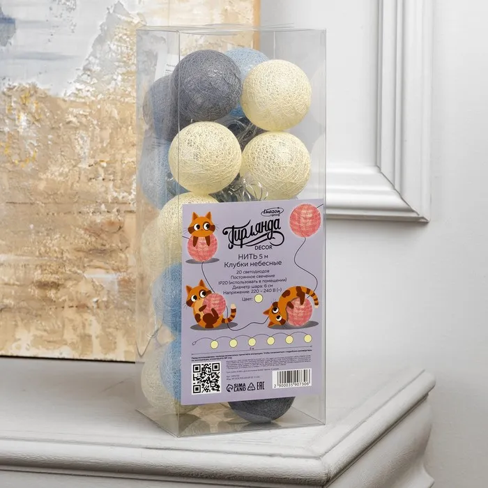 Гирлянда - нить, 5 м с насадками «Клубки небесные», IP20, прозрачная нить, 20 LED, свечение тёплое белое, 220 В — Характеристики