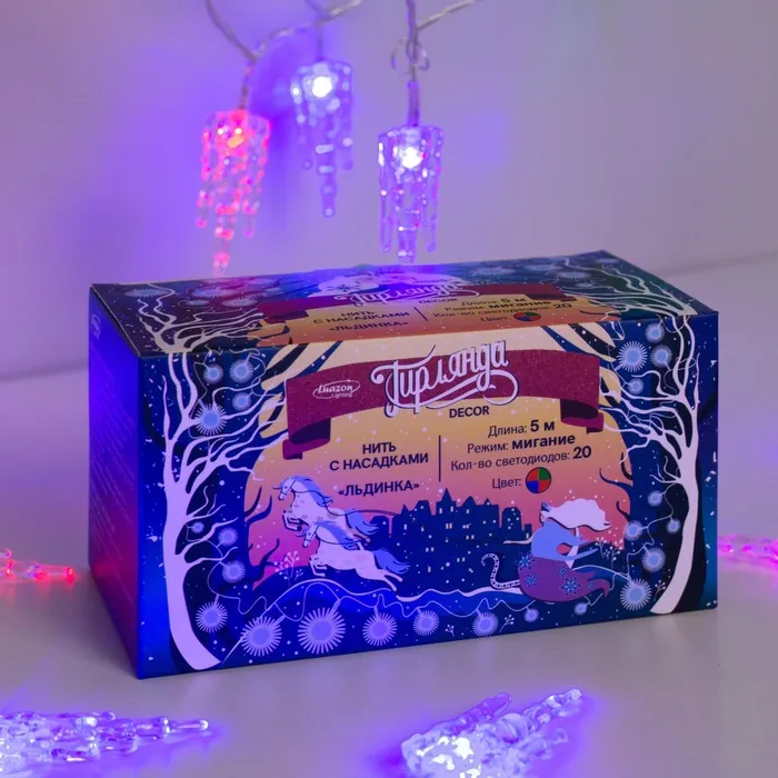 Гирлянда «Нить» 5 м с насадками «Льдинка», IP20, прозрачная нить, 20 LED, свечение мульти (RG/RB), мигание, 220 В — Характеристики