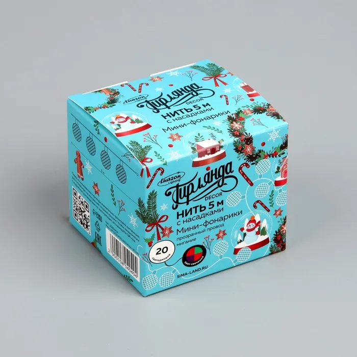 Гирлянда «Нить» 5 м с насадками «Мини фонарик», IP20, прозрачная нить, 20 LED, свечение мульти (RG/RB), мигание, 220 В — Характеристики