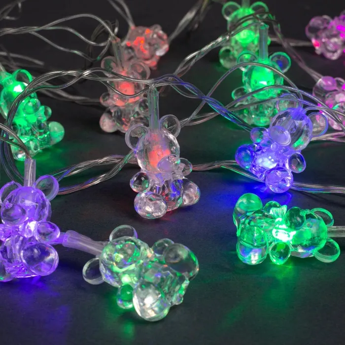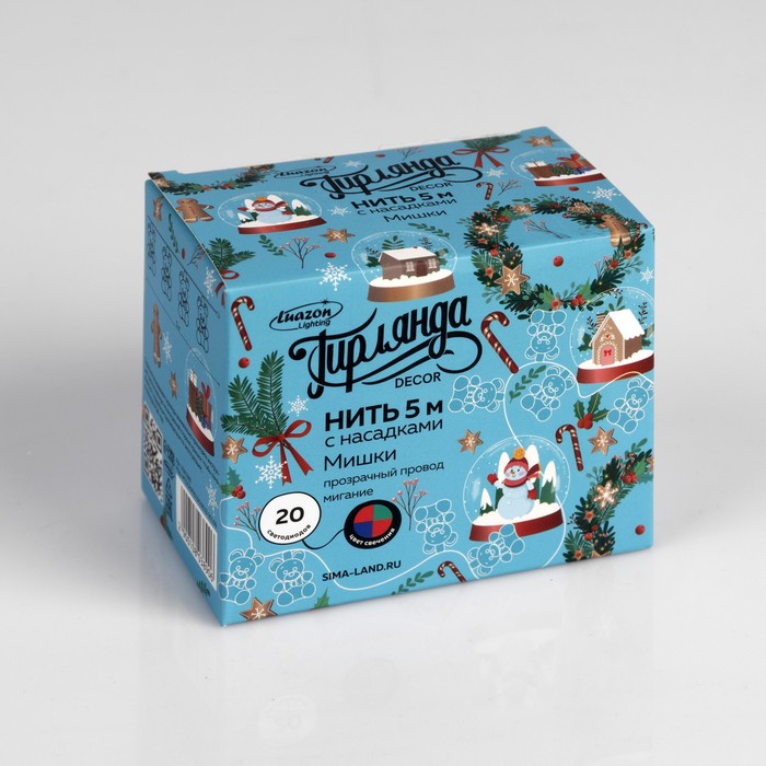 Гирлянда «Нить» 5 м с насадками «Мишки», IP20, прозрачная нить, 20 LED, свечение мульти (RG/RB), мигание, 220 В — Характеристики