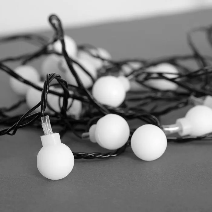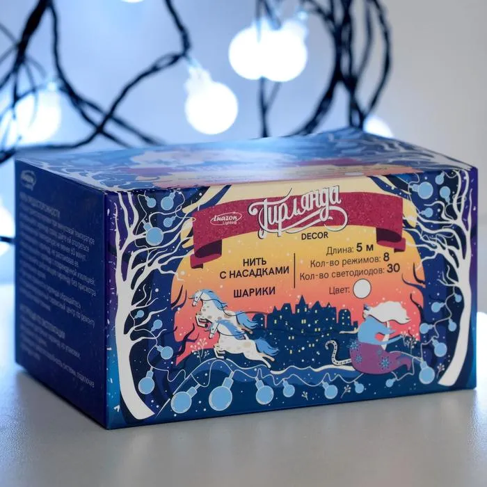 Гирлянда «Нить» 5 м с насадками «Шарики белые», IP20, тёмная нить, 30 LED, свечение белое, 8 режимов, 220 В — Характеристики