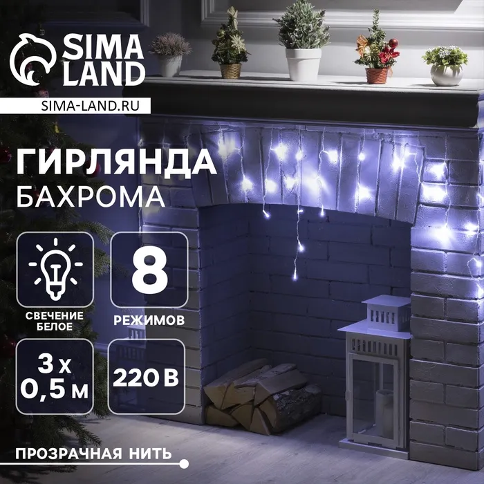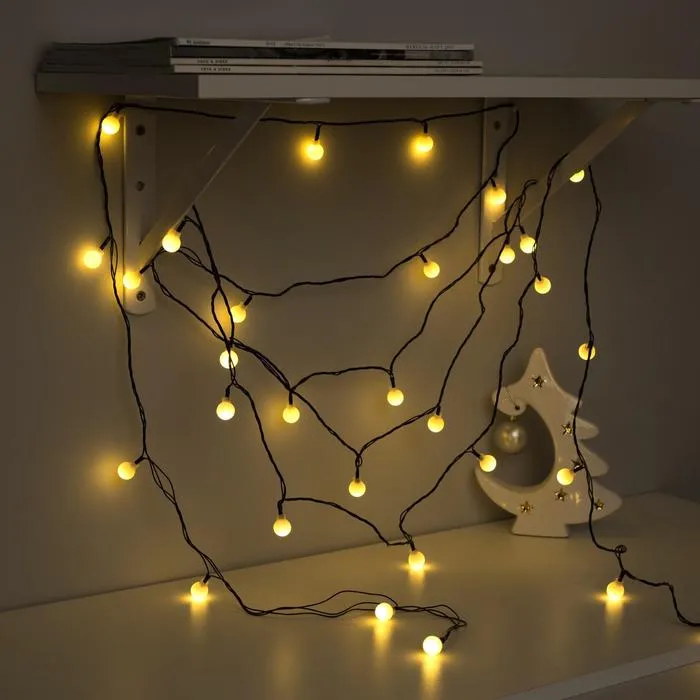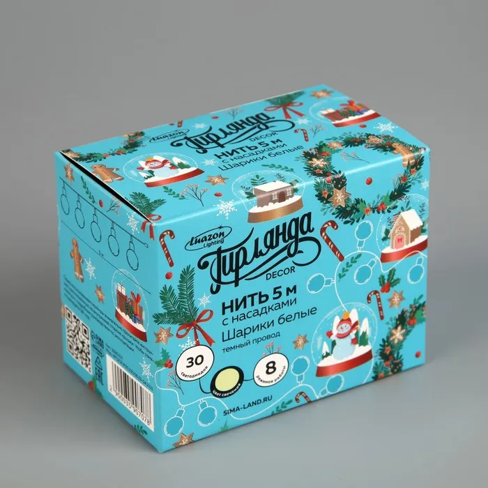 Гирлянда «Нить» 5 м с насадками «Шарики белые», IP20, тёмная нить, 30 LED, свечение тёплое белое, 8 режимов, 220 В — Характеристики