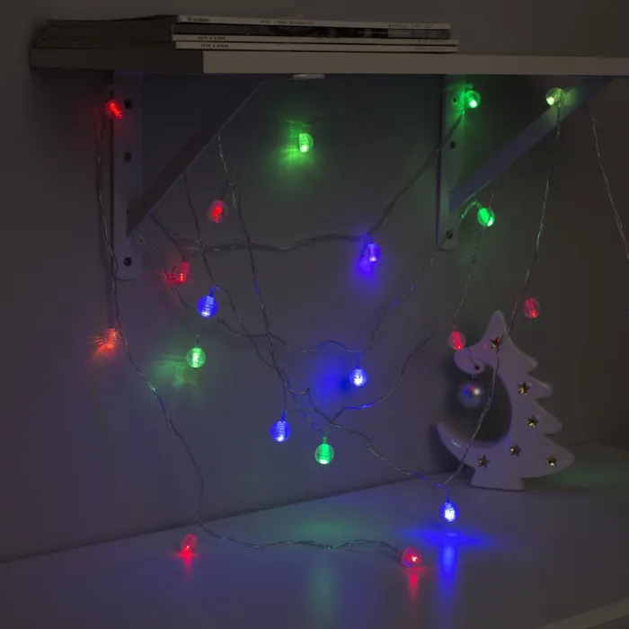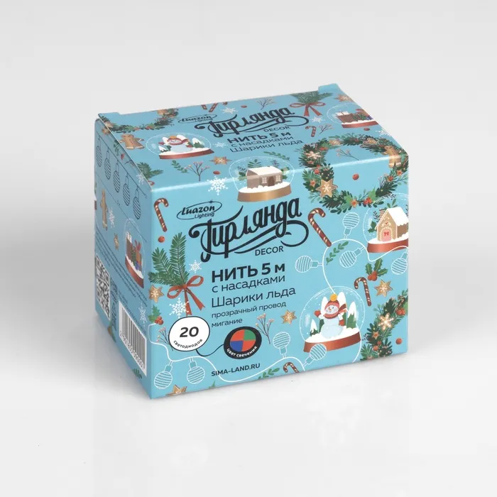 Гирлянда «Нить» 5 м с насадками «Шарики льда», IP20, прозрачная нить, 20 LED, свечение мульти (RG/RB), мигание, 220 В — Характеристики