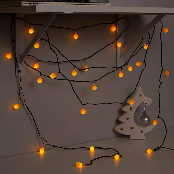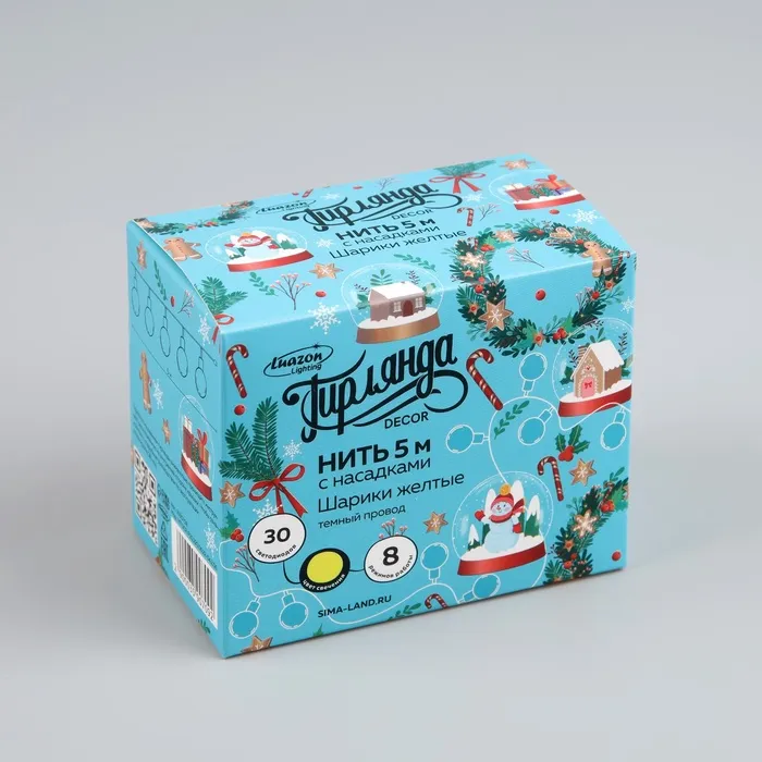 Гирлянда «Нить» 5 м с насадками «Шарики жёлтые», IP20, тёмная нить, 30 LED, свечение жёлтое, 8 режимов, 220 В — Характеристики