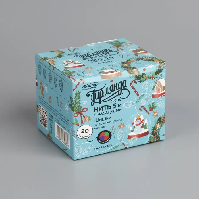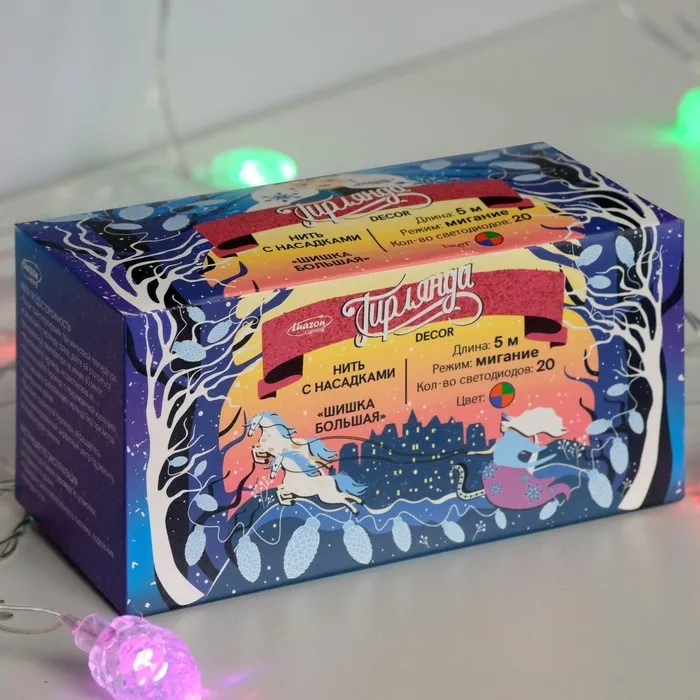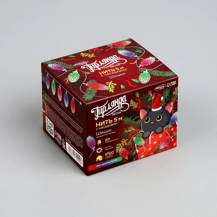 Гирлянда «Нить» 5 м с насадками «Шишки большие», IP20, прозрачная нить, 20 LED, свечение мульти (RG/RB), мигание, 220 В — Характеристики