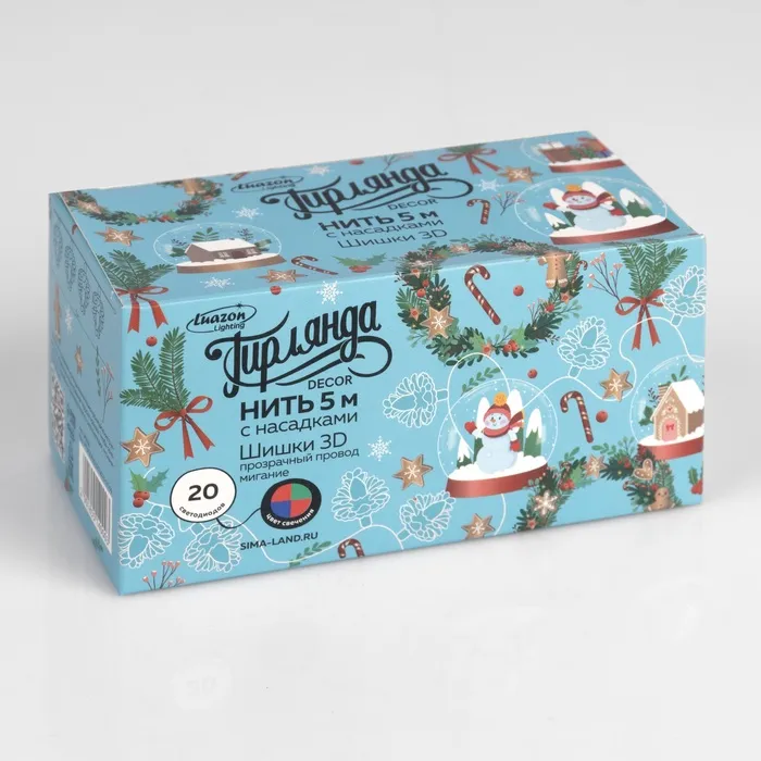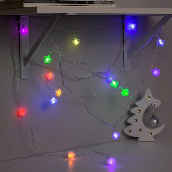 Гирлянда «Нить» 5 м с насадками «Шишки сосновые», IP20, прозрачная нить, 20 LED, свечение мульти (RG/RB), мигание, 220 В — Характеристики