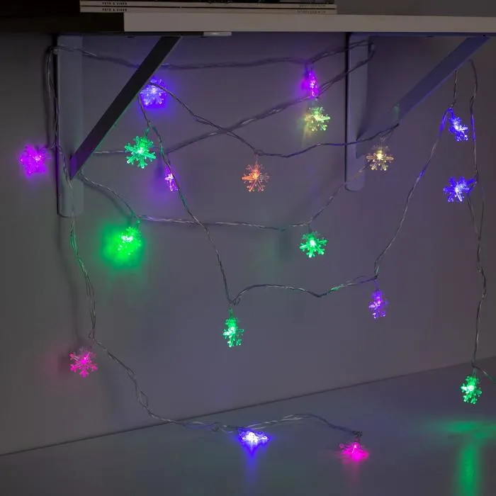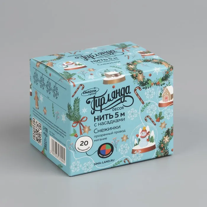 Гирлянда «Нить» 5 м с насадками «Снежинки большие», IP20, прозрачная нить, 20 LED, свечение мульти (RG/RB), мигание, 220 В — Характеристики