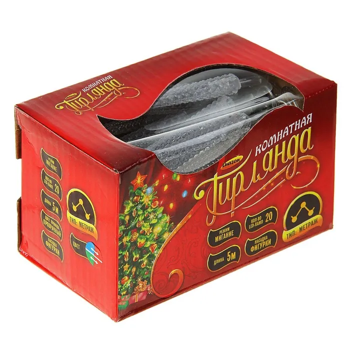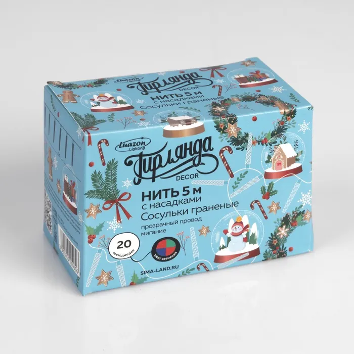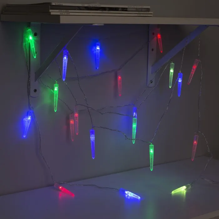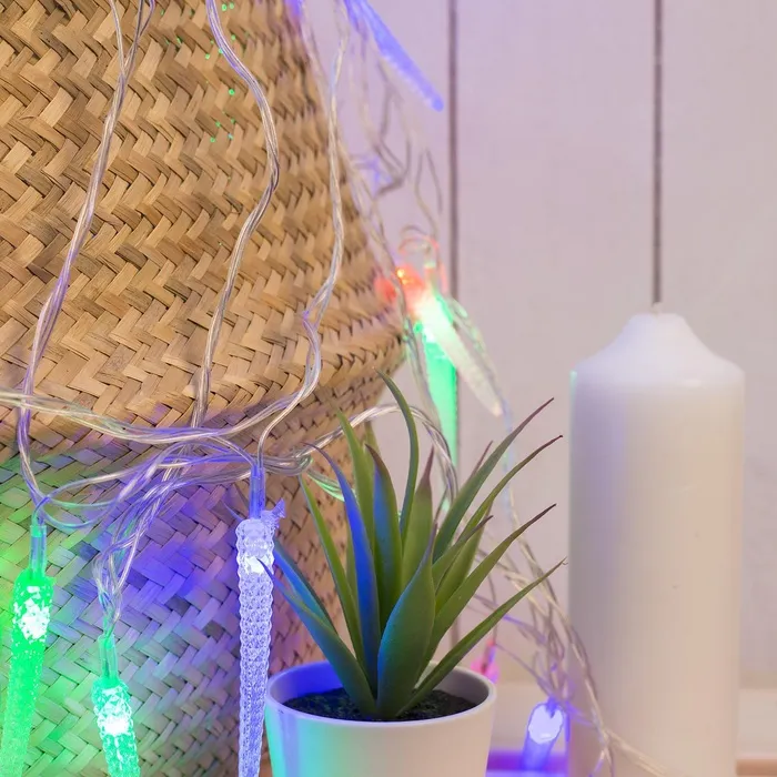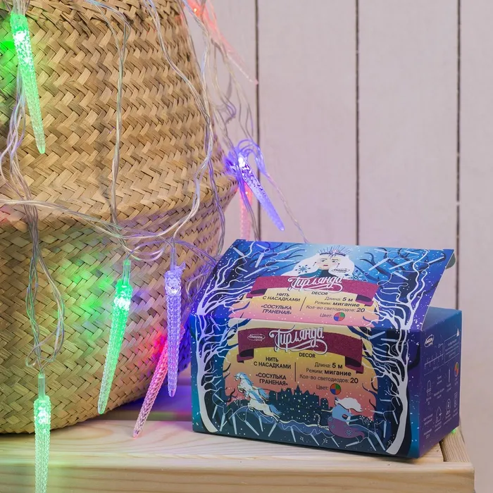 Гирлянда «Нить» 5 м с насадками «Сосульки граненые», IP20, прозрачная нить, 20 LED, свечение мульти (RG/RB), мигание, 220 В — Характеристики