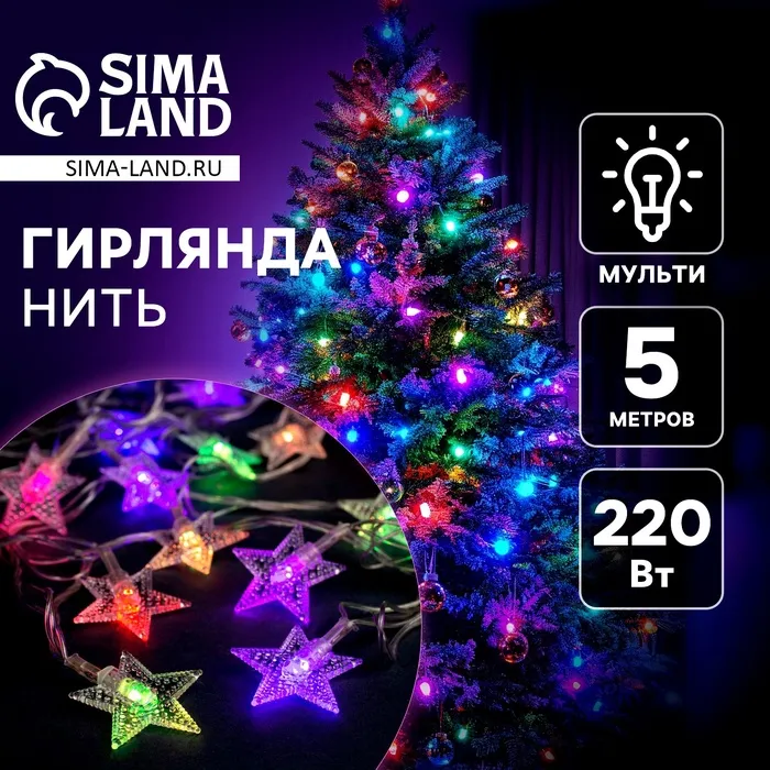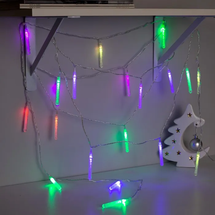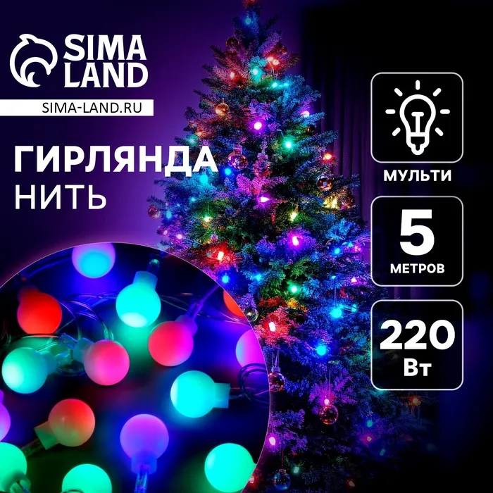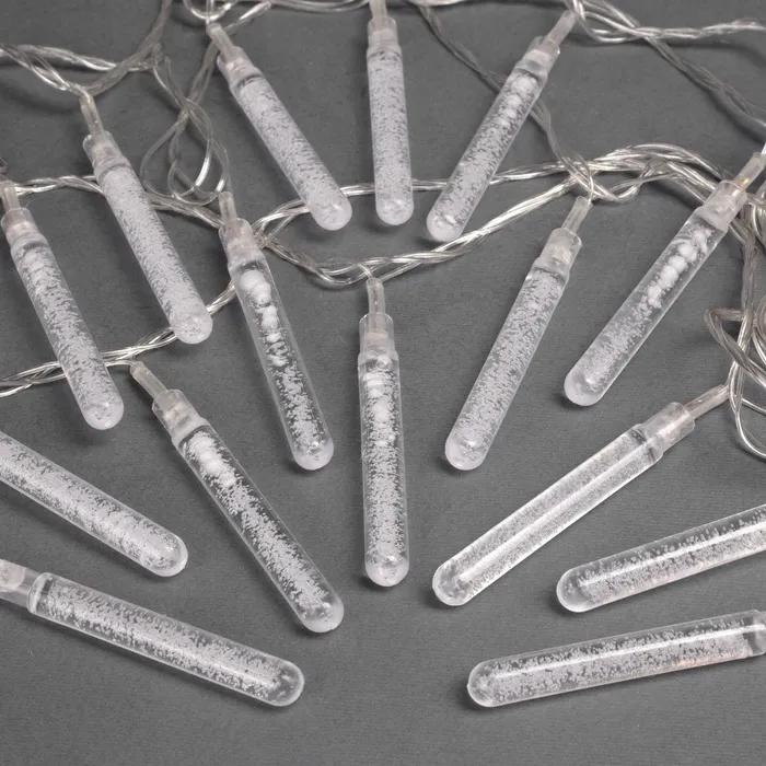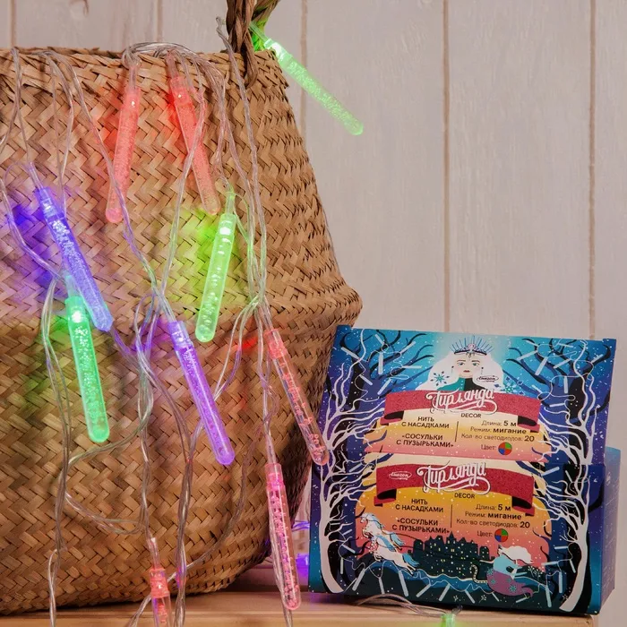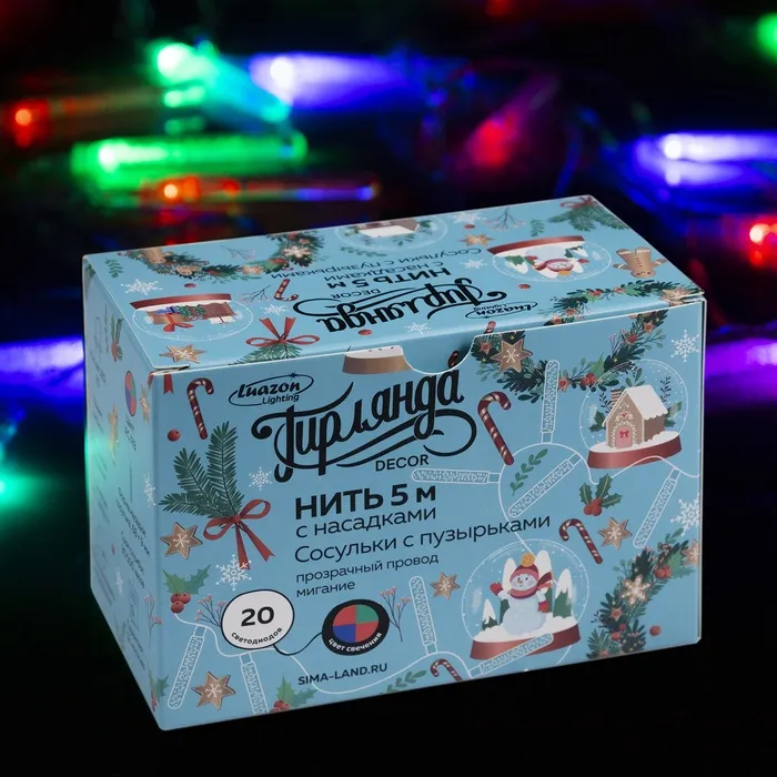 Гирлянда «Нить» 5 м с насадками «Сосульки с пузырьками», IP20, прозрачная нить, 20 LED, свечение мульти (RG/RB), мигание, 220 В — Характеристики