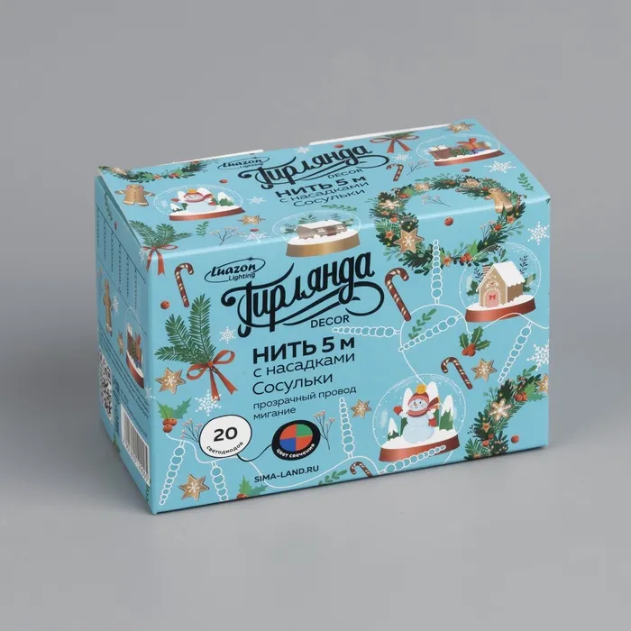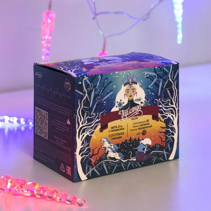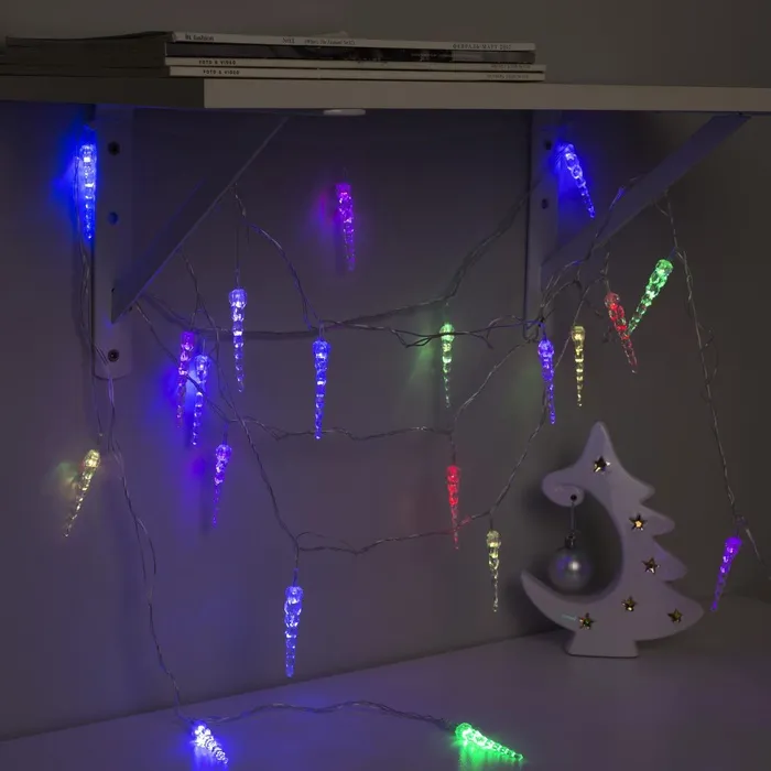 Гирлянда «Нить» 5 м с насадками «Сосульки тающие», IP20, прозрачная нить, 20 LED, свечение мульти (RG/RB), мигание, 220 В — Характеристики