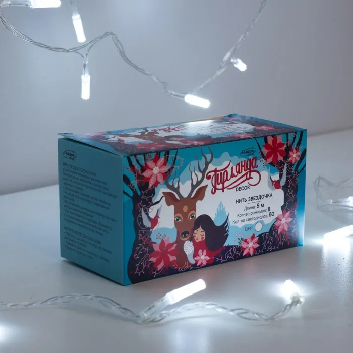 Гирлянда «Нить» 5 м с насадками «Звёздочки», IP20, прозрачная нить, 50 LED, свечение белое, 8 режимов, 220 В — Характеристики