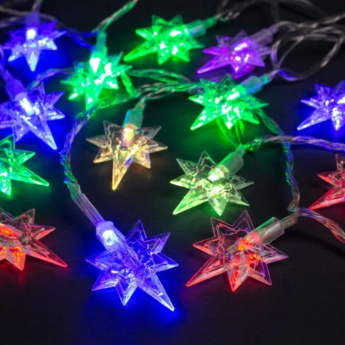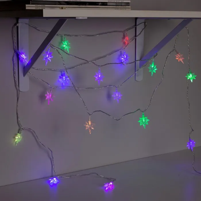 Гирлянда «Нить» 5 м с насадками «Звёзды», IP20, прозрачная нить, 20 LED, свечение мульти (RG/RB), мигание, 220 В — Характеристики