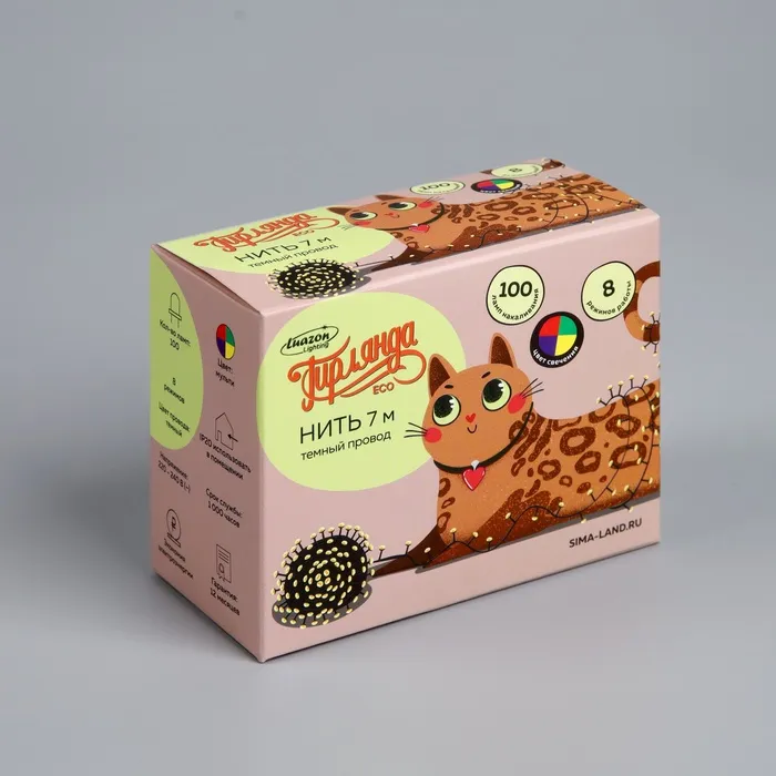Гирлянда «Нить» 7 м, IP20, тёмная нить, 100 ламп, 8 режимов, 220 В, свечение мульти — Характеристики