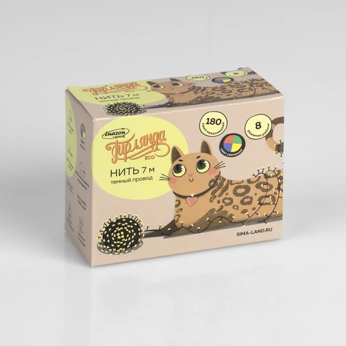 Гирлянда «Нить» 7 м, IP20, тёмная нить, 180 ламп, свечение мульти, 8 режимов, 220 В — Характеристики