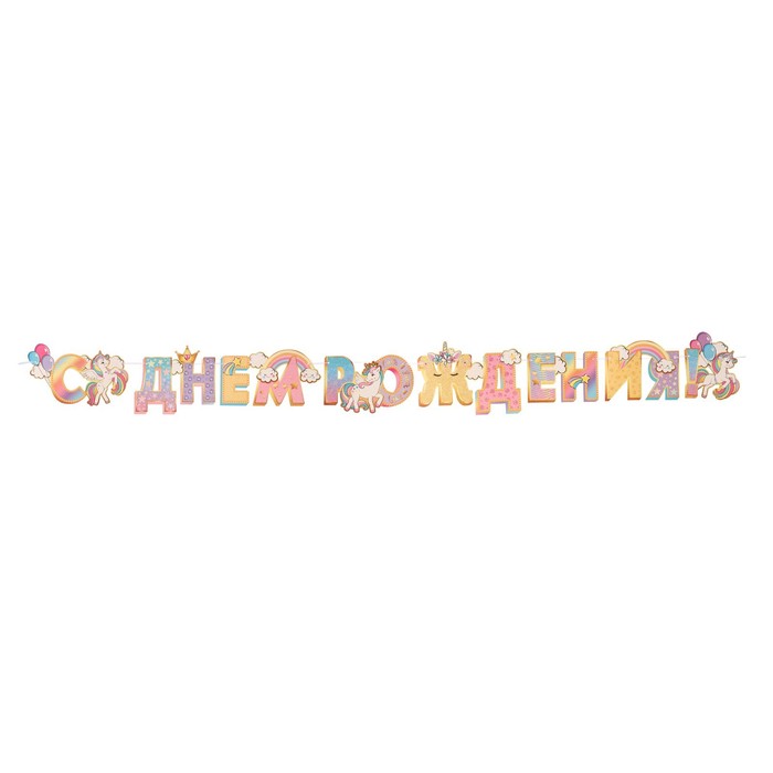Гирлянда «С Днём Рождения!" единороги, 50×34.5 см