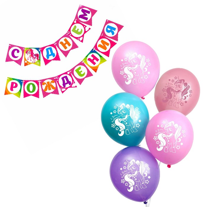 Гирлянда бумажная «Красавица пони» + шарики набор 5 штук