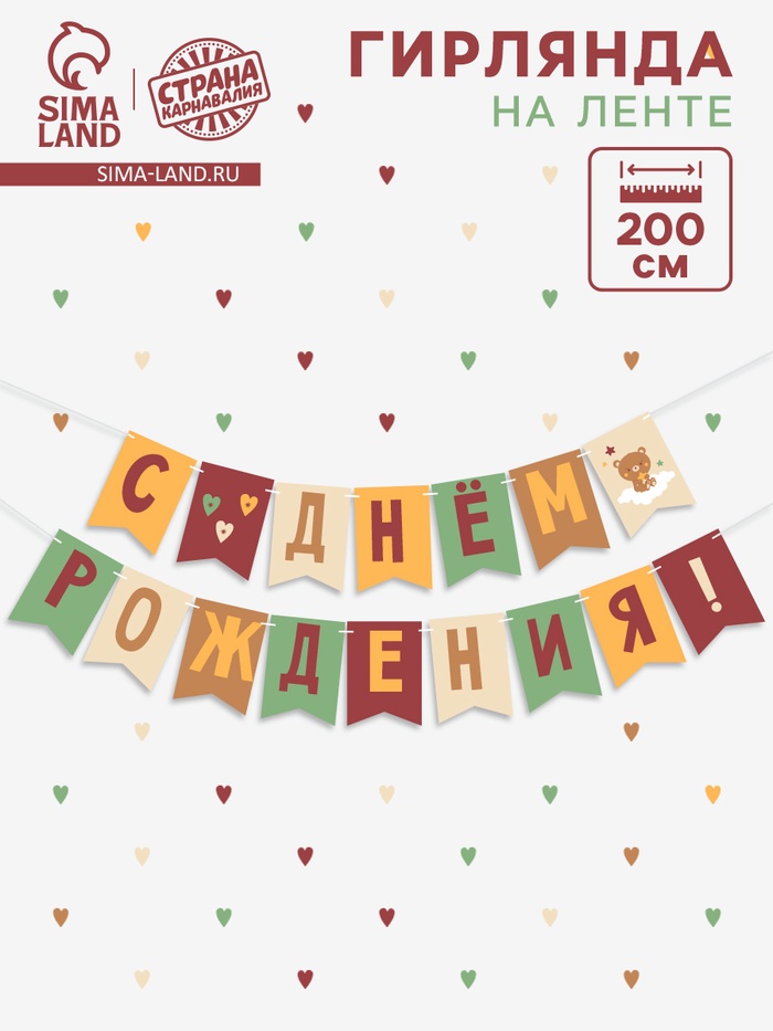Гирлянда на ленте «С Днём Рождения!», оранжевый нюд, 200 см